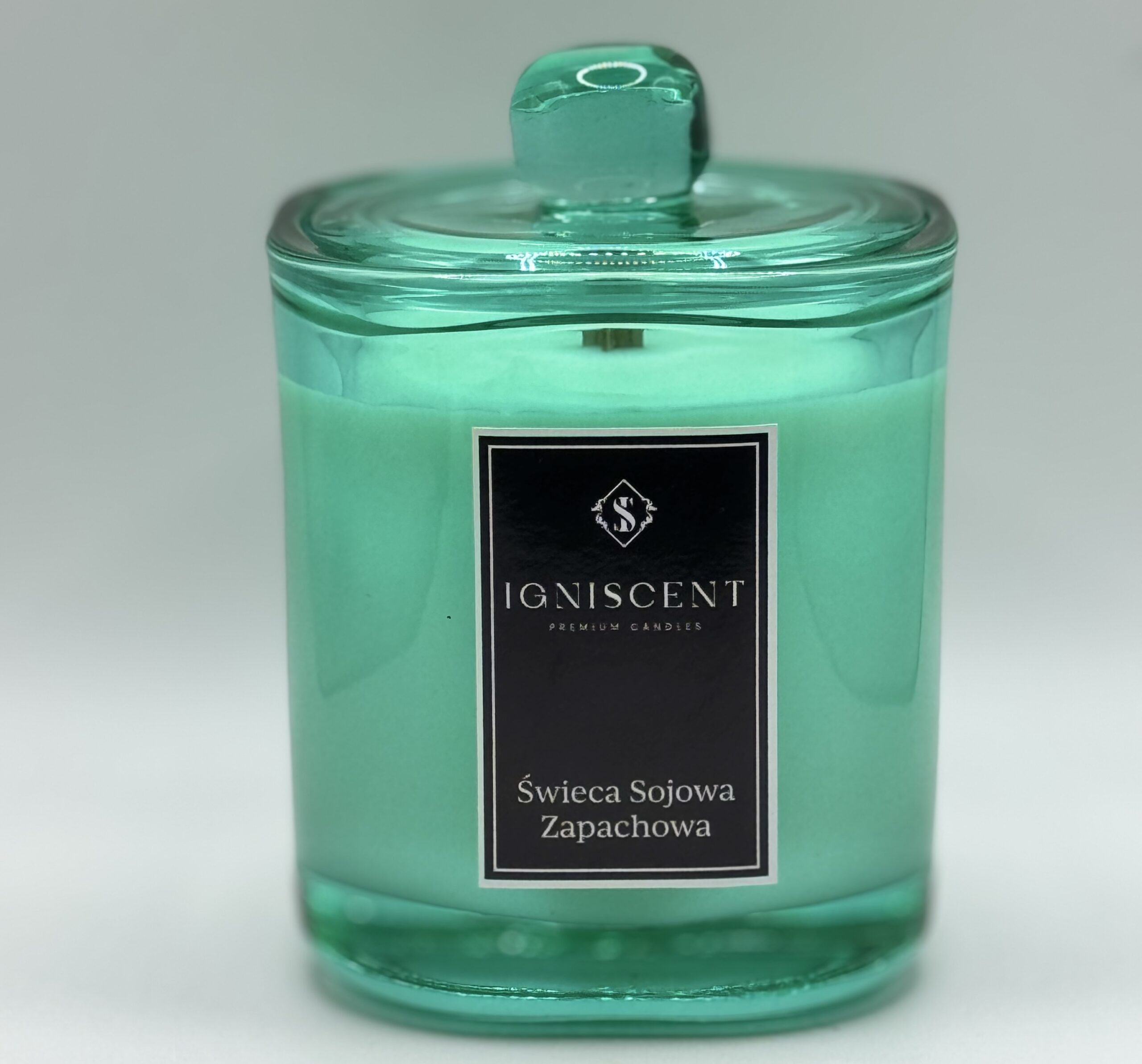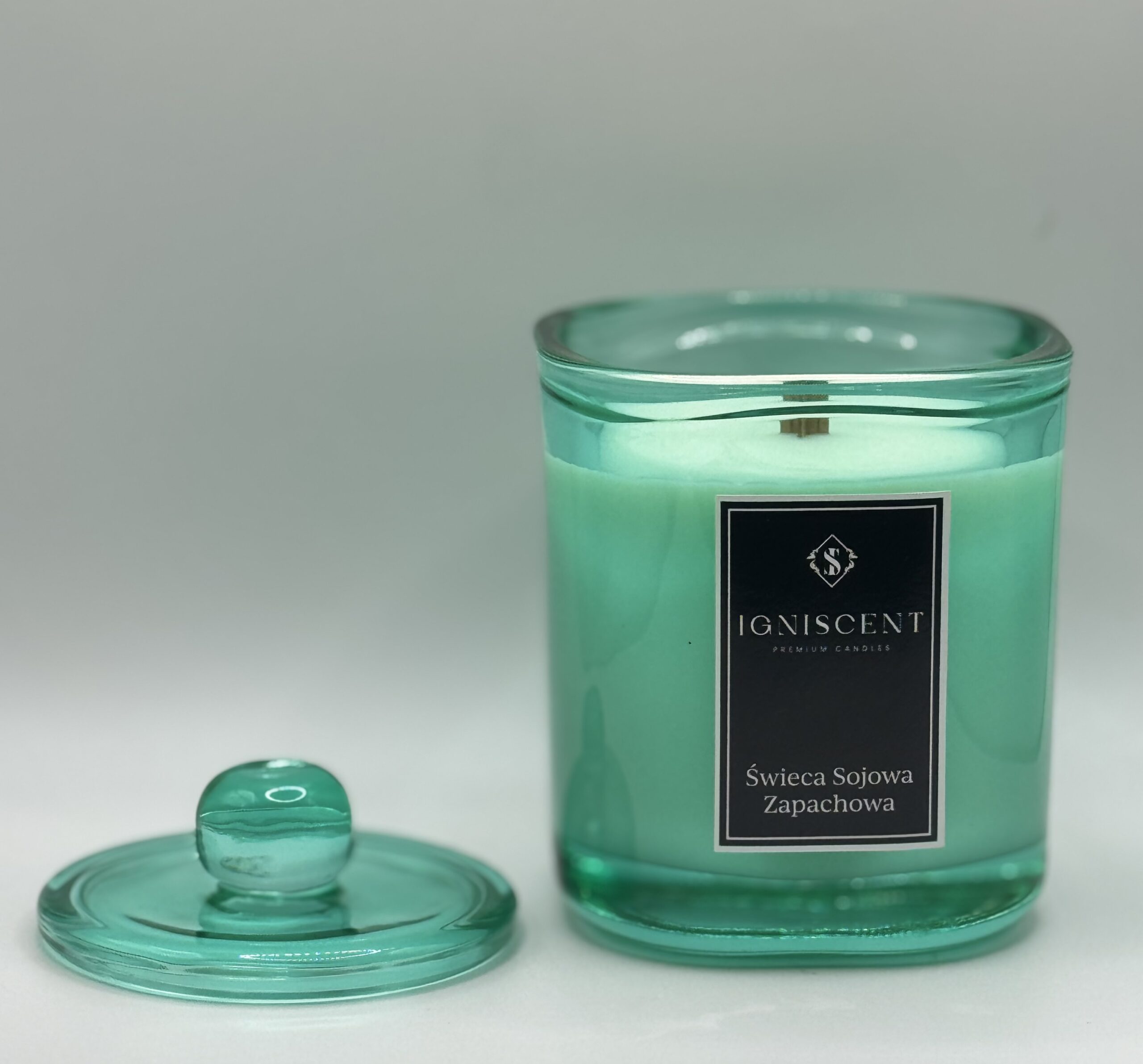 Pojemnik świecy sojowej Rubinowy Blask z kolekcji Igniscent Premium Candles wykonany jest z eleganckiego, turkusowego szkła, które przyciąga wzrok swoją świeżością i lekkością. Jego barwa przywodzi na myśl czyste wody tropikalnej laguny – głęboka, ale zarazem przejrzysta, pełna światła i wakacyjnej energii.
