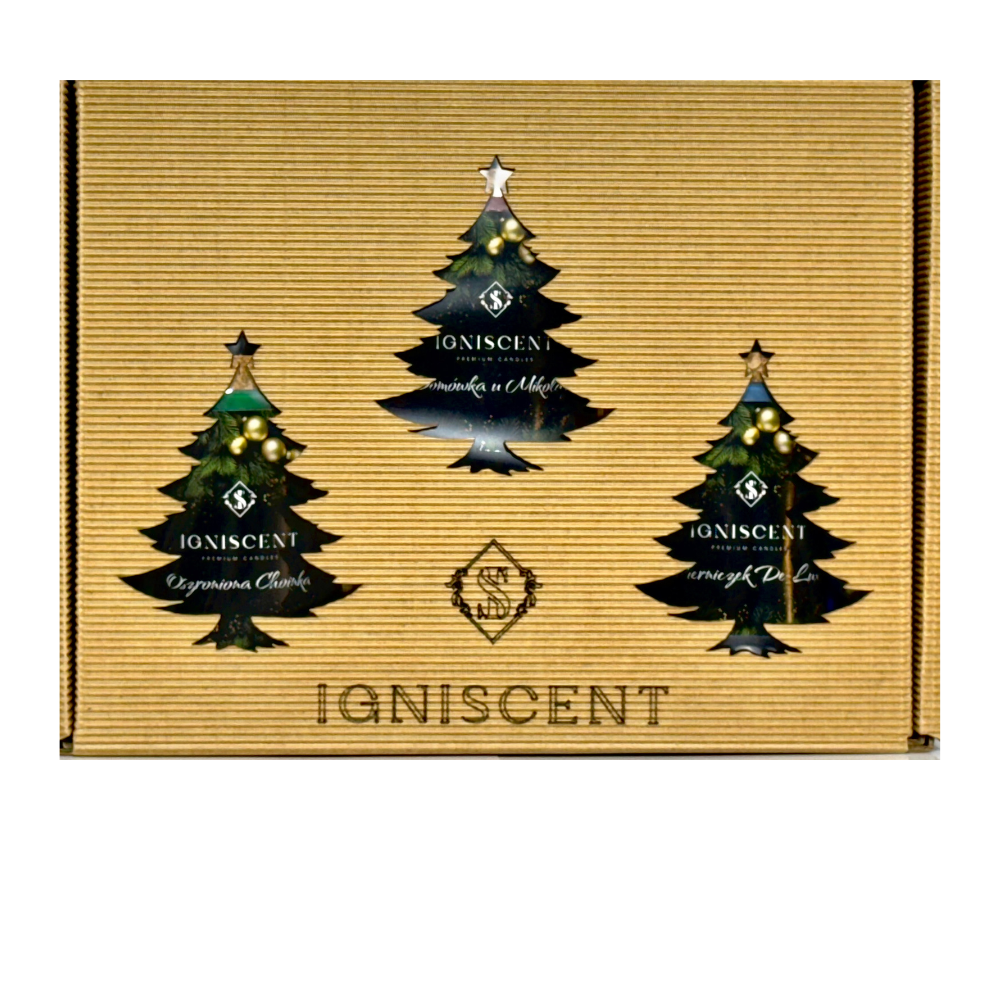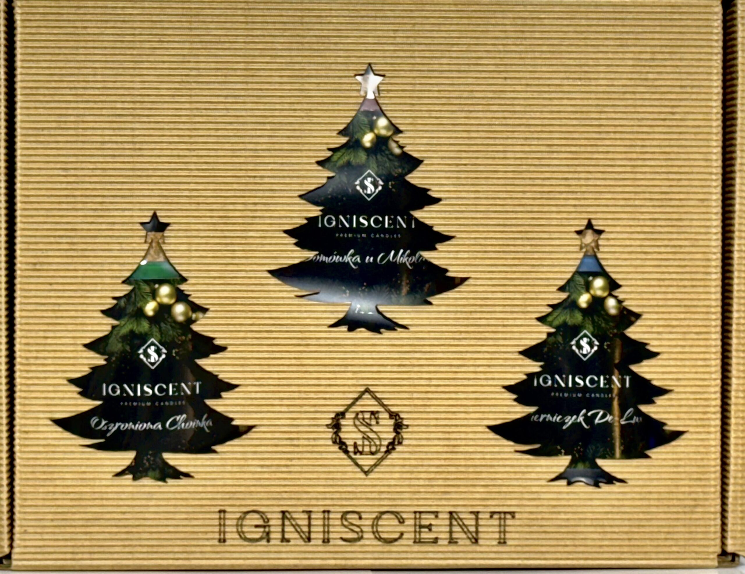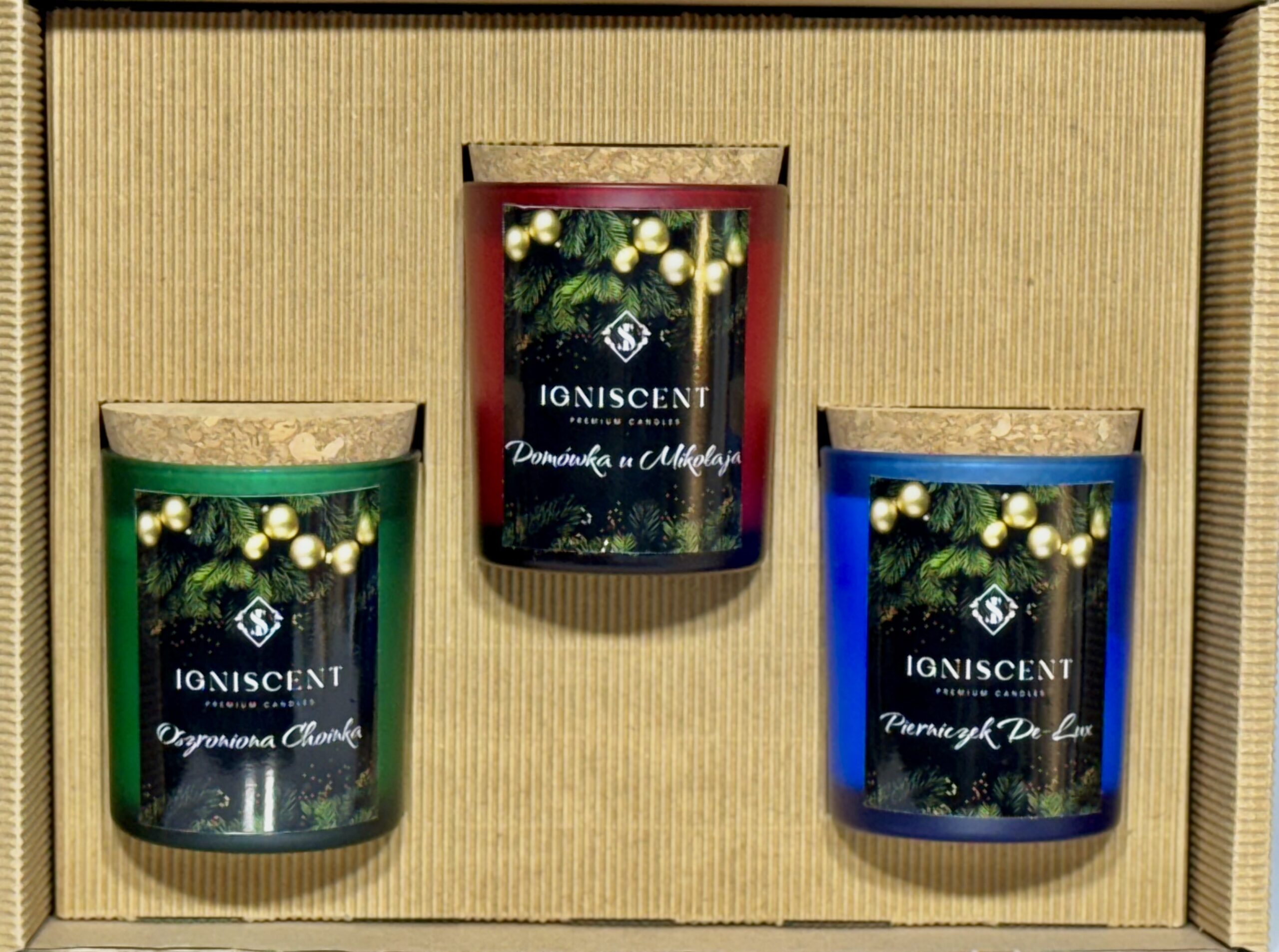to elegancki zestaw trzech świec zapachowych, stworzony z myślą o gotowym, wyjątkowym prezencie. Każda świeca wypełnia dom autentycznym aromatem Świąt — od ciepłych nut piernikowych, przez tradycyjny kompot z suszu, po świeży zapach oszronionej choinki.